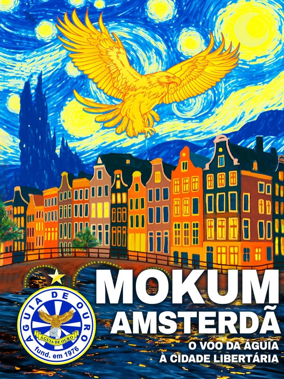 Realmente, Amsterdã é uma terra encantada e nessa noite recebe a nossa Águia, no Rio Amstel com uma festa real tal como o nosso querido carnaval! Saudamos os reis: o nosso momo e o holandês! Um brinde com samba e cerveja para a cidade que nos inspira viver a liberdade! Vamos nos embriagar de felicidade nesse rio de cerveja! Sejamos felizes nesta festa pulsante de cor laranja!